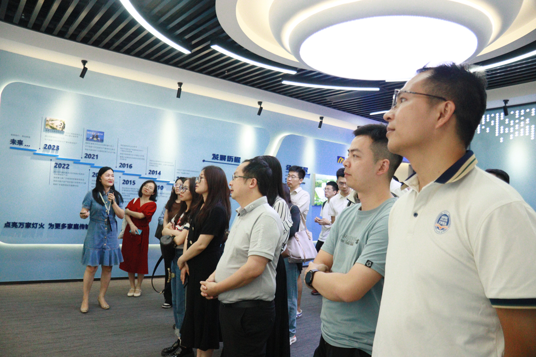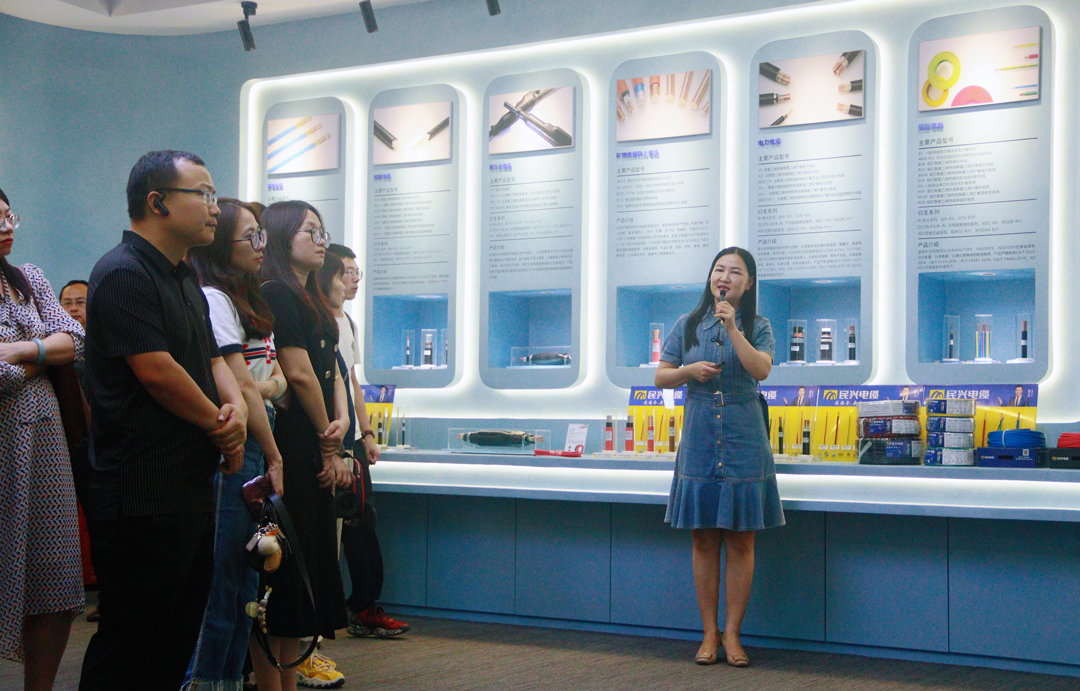 當(dāng)日下午,華南理工大學(xué)金融MBA師生一行抵達(dá)民興電纜后,受到了李總等的熱情接待。隨后,在李總等的陪同下,師生們前往民興電纜科技展廳參觀。參觀過程中,一幅幅展現(xiàn)民興發(fā)展歷程、主營產(chǎn)品系列、重點(diǎn)工程案例、研發(fā)創(chuàng)新、資質(zhì)榮譽(yù)、企業(yè)文化、社會(huì)責(zé)任等的精彩篇章,一幀幀科技酷炫的可視化運(yùn)營動(dòng)態(tài)畫面……無不令師生們贊嘆。