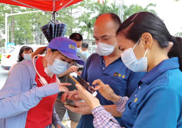 “謝謝,多虧了你們幫忙,要不然真不知如何是好!”6月8日晚9點(diǎn),在位于宏盈工業(yè)區(qū)停車場處的新冠病毒核酸篩查采集點(diǎn),65歲的黃大伯完成核酸采樣后連忙跑到入口信息登記處向志愿者阿川鞠躬道謝。原來,黃大伯當(dāng)晚只身前來核檢,使用的是老人機(jī),又不懂操作,志愿者阿川了解了老人的不便后,主動(dòng)掏出自己的手機(jī)幫助老人掃碼登記,耐心講解核酸檢測流程,一步步引導(dǎo),直到核酸采樣完成?!斑@種情況還蠻多的,我們希望能夠通過自己的力量幫助到他人,傳遞社會(huì)溫暖,也算是為抗擊疫情貢獻(xiàn)一份微薄之力?!?